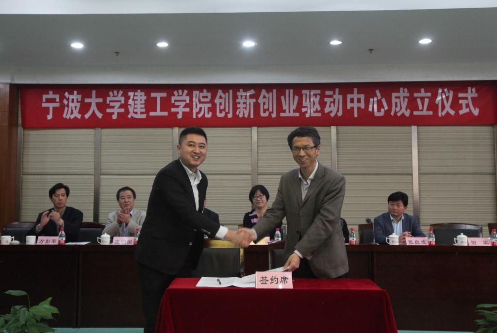 “科信”大学生创新基金用于支持建工学院创新创业工作的开展。建工学院与广联达软件股份公司签订创新创业实验室合作协议。建工学院院长为四位校外“创新创业导师”颁发聘书。议程最后校党委副书记郑孟状和宁波团市委书记鲍娴萍为建工学院创新创业驱动中心揭牌。