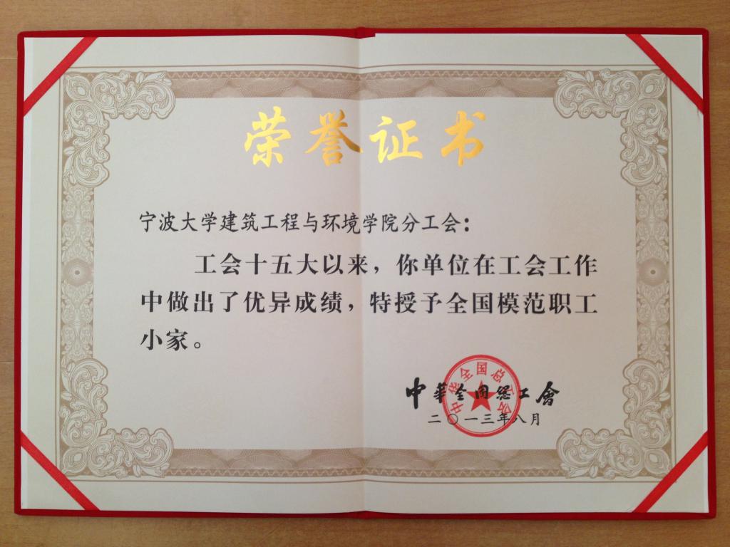 优秀教工小家,并获得宁波市“工人先锋号”、宁波市优秀教工小家、浙江省模范职工小家、全国模范职工小家等荣誉。