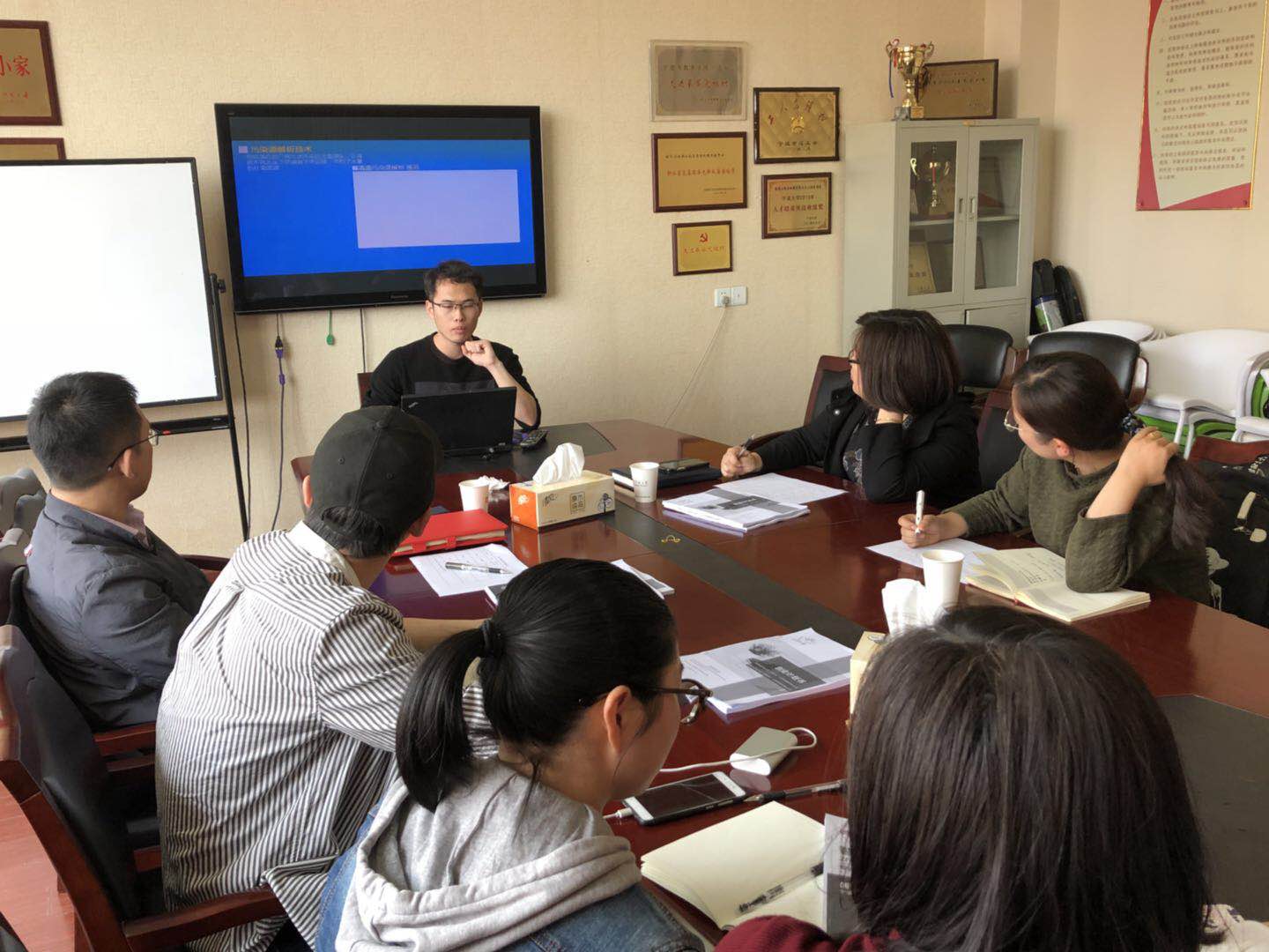 我院本次参加“互联网+”共有四支队伍,分别为“智迪科技”、“清源观察中心”、“思清水景”和“懿森建筑”。四支队伍负责人分别将所在队伍的项目进行了展示和介绍。戚家超老师对分别对各支队伍提出了存在的问题以及改进建议。