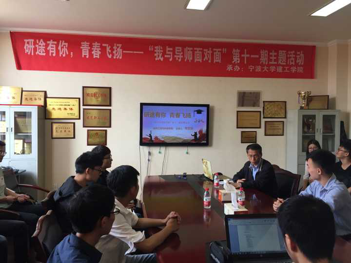 5月10日下午,我院在建工学院303会议室举办主题为“研途有你,青春飞扬”的我与导师面对面交流活动,主讲人为建工学院院长郑荣跃教授。