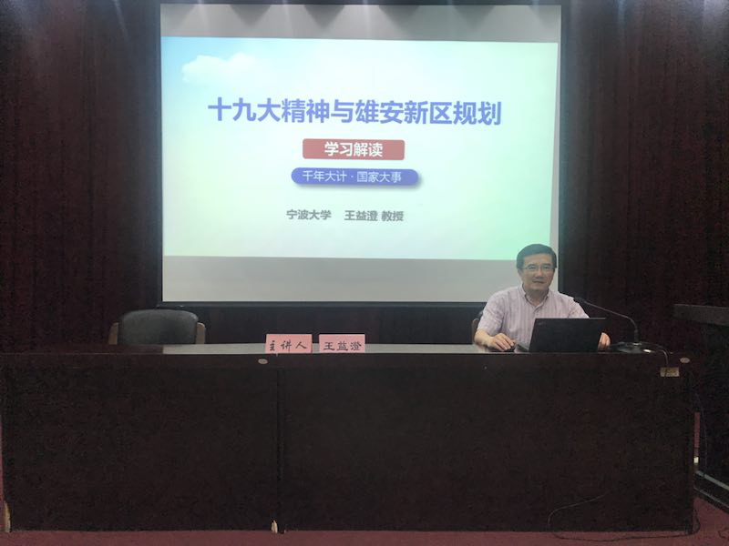 王益澄书记从十九大报告出发,详细阐述了以习近平同志为核心的党中央对雄安新区规划建设的高度重视和殷切期望。党的“十九大”把雄安新区写入报告,提出以疏解北京非首都功能为“牛鼻子”推动京津冀协同发展,高起点规划、高标准建设雄安新区。是千年大计,国家大事。王书记从雄安新区规划批复、规划背景、规划思路、规划内容及规划亮点等五个方面进行了全面解读。