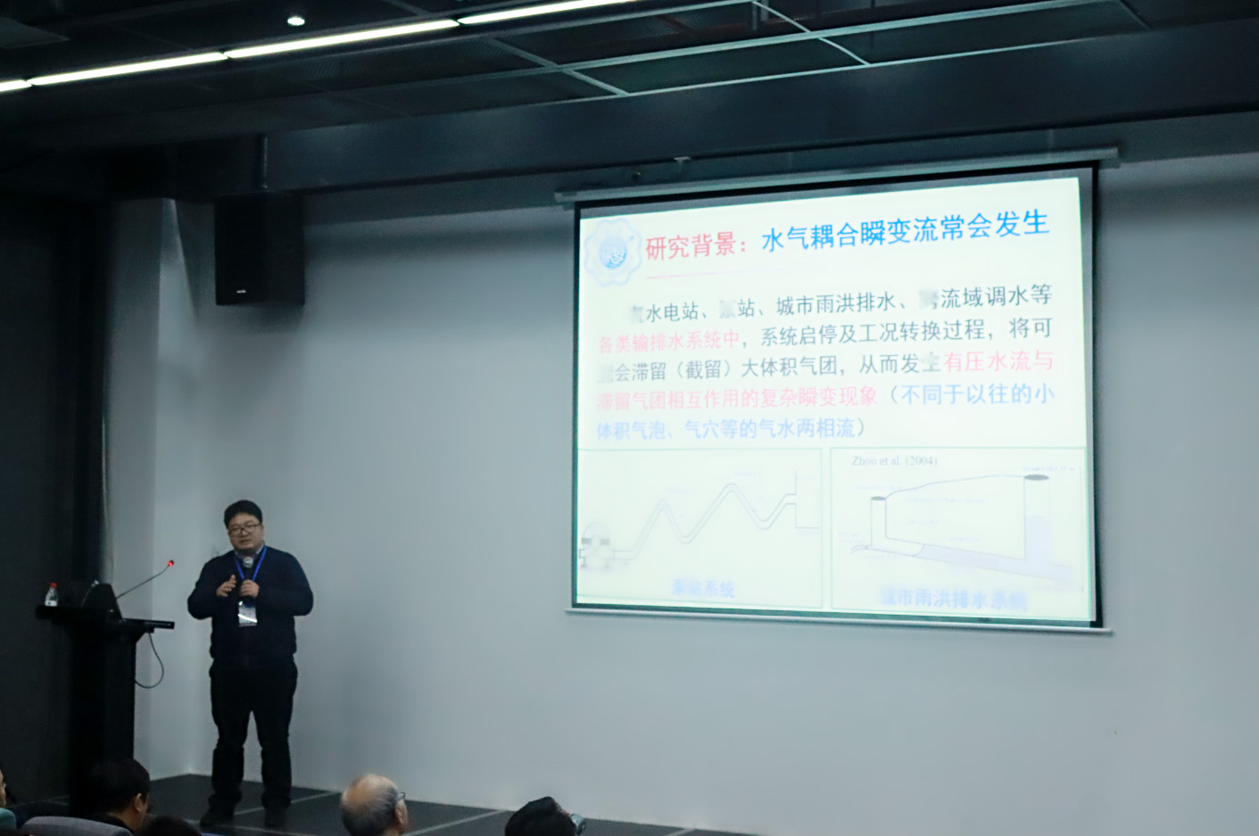 (4)河海大学的周领教授作了题为《输排水系统水气两相耦合作用瞬变流》的报告。