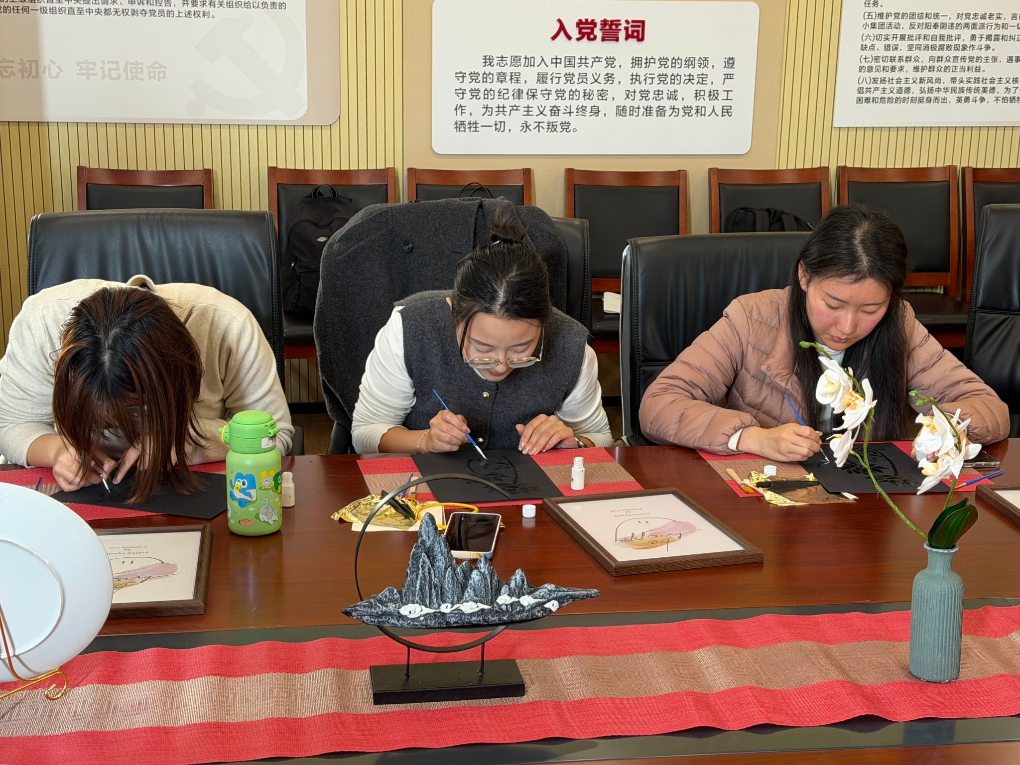 为进一步做好新时代高校廉洁文化建设,做爱视频 将红色主题教育与非物质文化遗产传承深度融合,于11月26日下午举行“手作传廉韵·红心耀金箔”——非遗技艺里的清廉党建手工课。二十余名师生党员围坐一堂,以金箔画勾勒“竹影莲香”的清廉风骨,用3D红船拼接“初心如磐”的红色信仰,在非遗技艺中厚植廉洁底色,淬炼党性初心。
